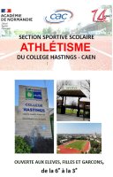 Depuis 3 ans, il y a au collège Hastings une section ATHLETISME. Ouverte à tous, filles ou garçons, de la 6e à la 3e, elle est encadrée par Mme Gaine, professeure d’EPS.